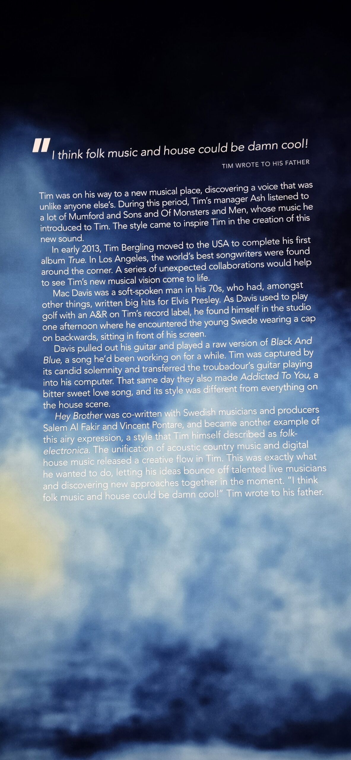 Avicii, geboren als Tim Bergling in Stockholm op 8 september 1989, was een Zweedse dj en producer die de wereld veroverde met zijn unieke sound, maar achter de beats schuilde een complex en tragisch verhaal. Hij overleed op 20 april 2018 in Oman, slechts 28 jaar oud, wij bezochten de Avicii experience.